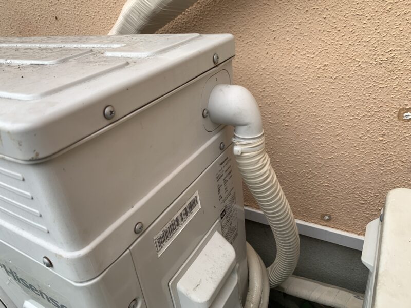ここまで来たら悩むことはありません。いつも通り配管をつないだら、この換気ホースも室外機に接続します。